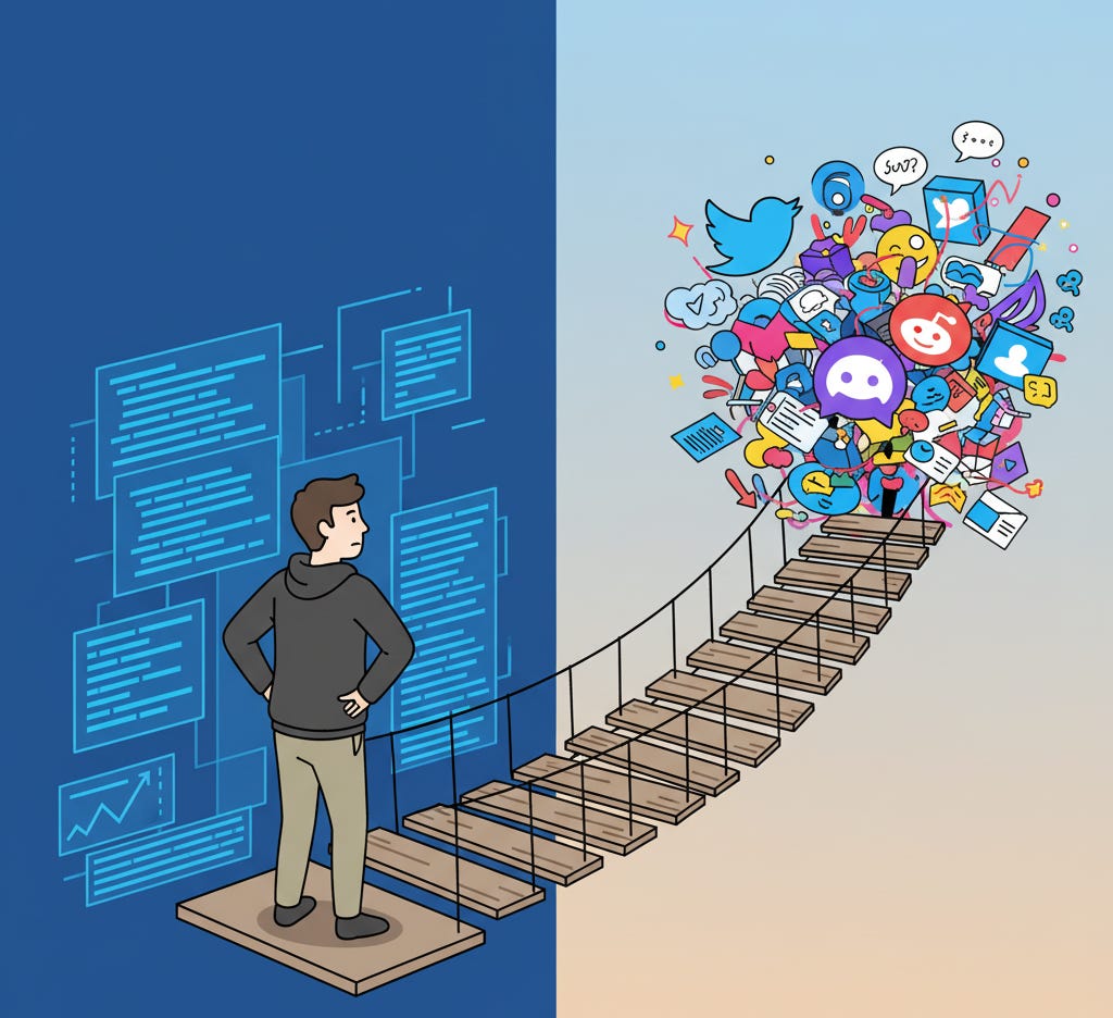 This is not a success story, not yet. It is a story about a developer obsessed with structure learning to navigate the chaos of marketing. It’s about trading the clean logic of code for the messy, unpredictable, but ultimately rewarding work of human connection.